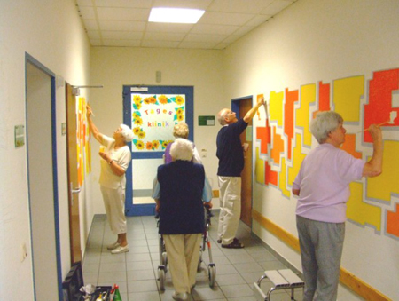 Die Projekte bieten eine schöne Abwechslung im Stationsalltag. Die Teilnehmer können sich nach ihren Möglichkeiten an den Projekten beteiligen. Bei längeren Aufenthalten z.B. in somatischen Kliniken oder bei Lanzeitaufenthalten wie hier in den Rheinische Kliniken entsteht eine Identifikation mit dem Umfeld. Dieser produktive Prozess wirkt sich auf das Wohlbefinden der Patienten positiv aus und fördert die Gesundung.
