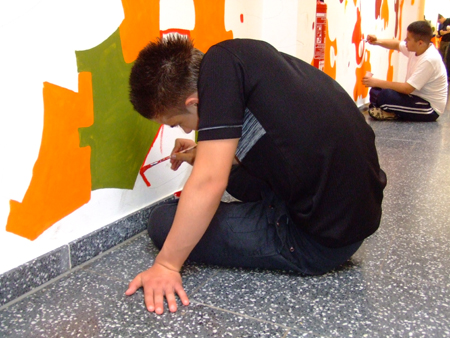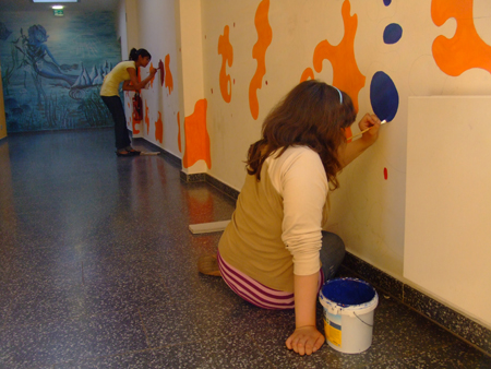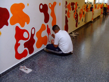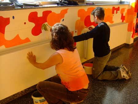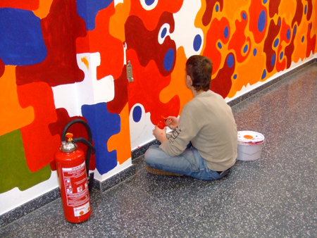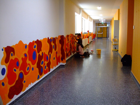 In Schulen findet man oft große Flächen, die durch „freie Gestaltung“ der Schüler nicht immer das Wohlwollen des Kollegiums finden. Durch eine bewusste und gesteuerte Gestaltung kann man die Kreativität der Schüler einbinden. So entsteht eine höhere Identifikation mit ihrem Umfeld. Die Gestaltung der Flure, Treppenhäuser und Toiletten schafft Verantwortung. In Projektwochen kann man durch aufeinander folgende Tage ein schnelles Ergebnis erziehlen. Über die „soziale Kontrolle“ der Schüler untereinander wird das geschaffene Kunstwerk auch länger erhalten.