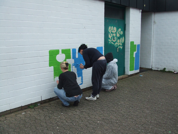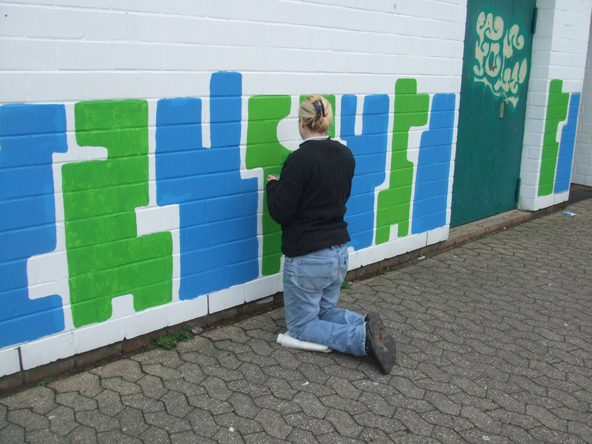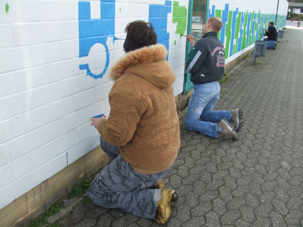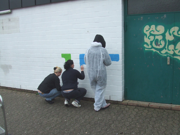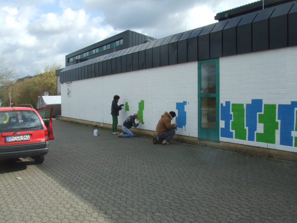 Projekte, die im öffentlichen Raum stattfinden haben einen hohen Stellenwert. Die Stadt Lohmar hat an der Jabachhalle durch eine attraktive Fasadengestaltung in den Farben ihrer Stadt der "freien Gestaltung" durch Sprayer usw. den Boden - in diesem Fall die Wand - entzogen. Durch die "belegung" Fläche ist sie für selbsternannte Künstler uninteressant geworden.