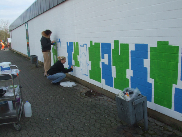 Projekte, die im öffentlichen Raum stattfinden haben einen hohen Stellenwert. Die Stadt Lohmar hat an der Jabachhalle durch eine attraktive Fasadengestaltung in den Farben ihrer Stadt der "freien Gestaltung" durch Sprayer usw. den Boden - in diesem Fall die Wand - entzogen. Durch die "belegung" Fläche ist sie für selbsternannte Künstler uninteressant geworden.